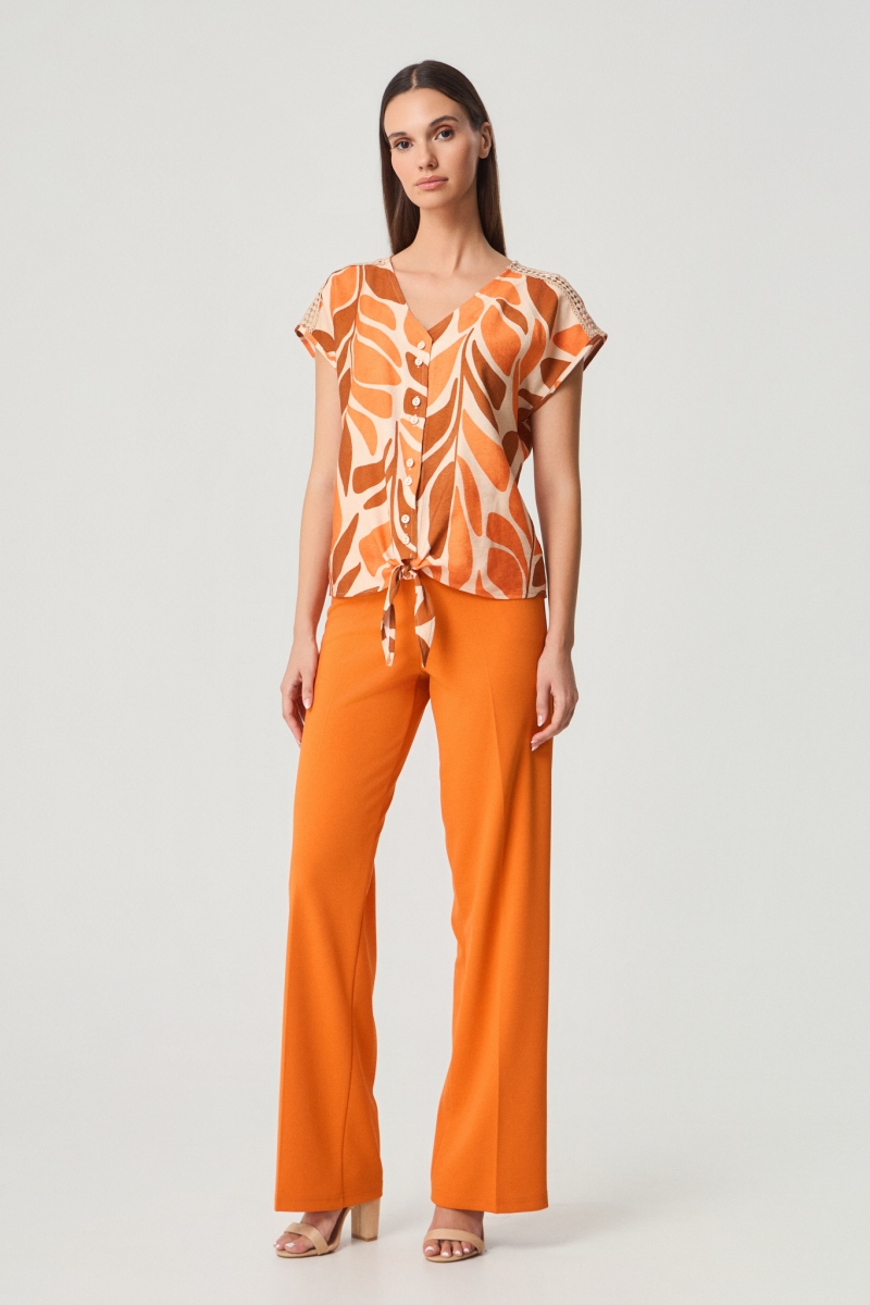 Bloesje met print en knoopje onderaan